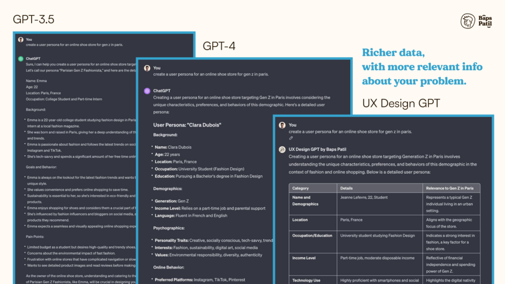 - Going over the same ChatGPT answers over and over again? The problem is that you're not providing enough context to the bot. UX Design GPT requests the appropriate context while suggesting tips from my personal knowledge database.